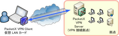 に接続することができる、仮想 LAN カードとしての機能を持った VPN クライアントソフトウェアです。PacketiX VPN Client